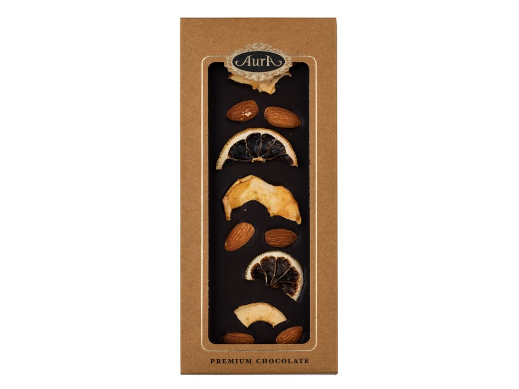 Aura Premium tmavá čokoláda s mixem citronu, jablka a mandlí 120 g