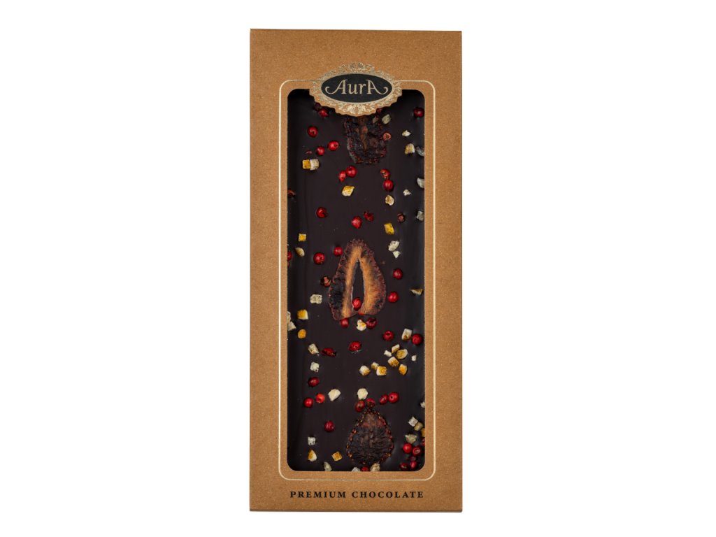 Aura Premium tmavá čokoláda s mixem jahod, pomeranče a červeného pepře 120 g