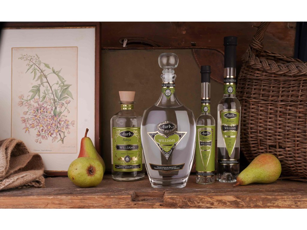 Vyrobena destilací hrušky odrůdy Viljamovka.