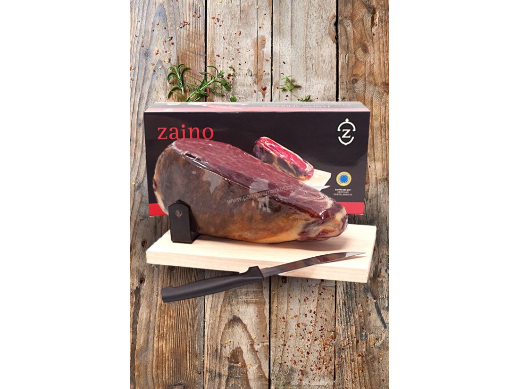 Praktické dárkové balení malého bloku španělské šunky se stojánkem a nožem je ideálním dárkem pro všechny gurmány. Pokud nechcete kupovat celou cenově dražší kýtu, toto je skvělý výběr.
