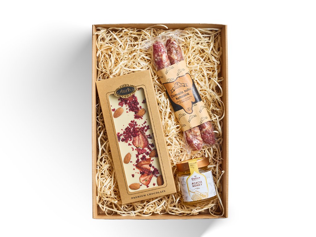 Akátový med • Sušená klobása 180 g • Čokoláda