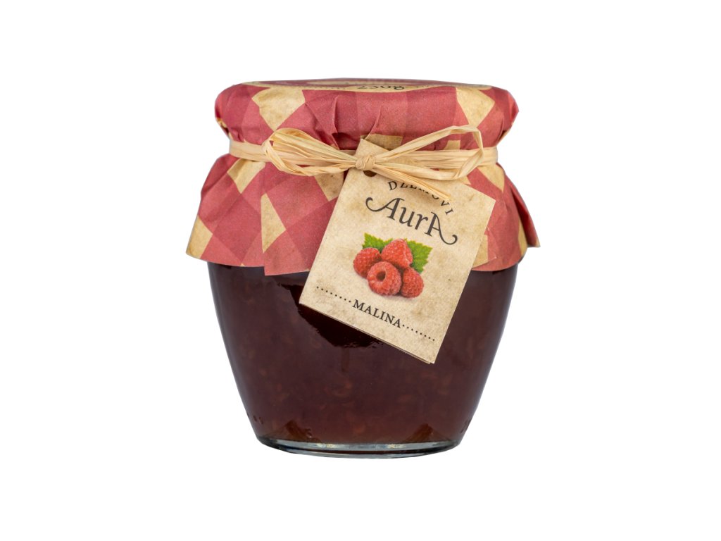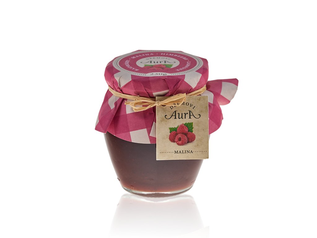 Vyrobeno podle rodinného receptu, bez aditiv a konzervantů, z plodů malin.