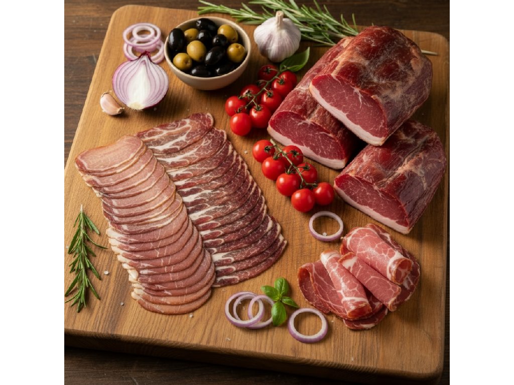 Složení: maso z vepřového krku bez kosti 97 %, kuchyňská sůl