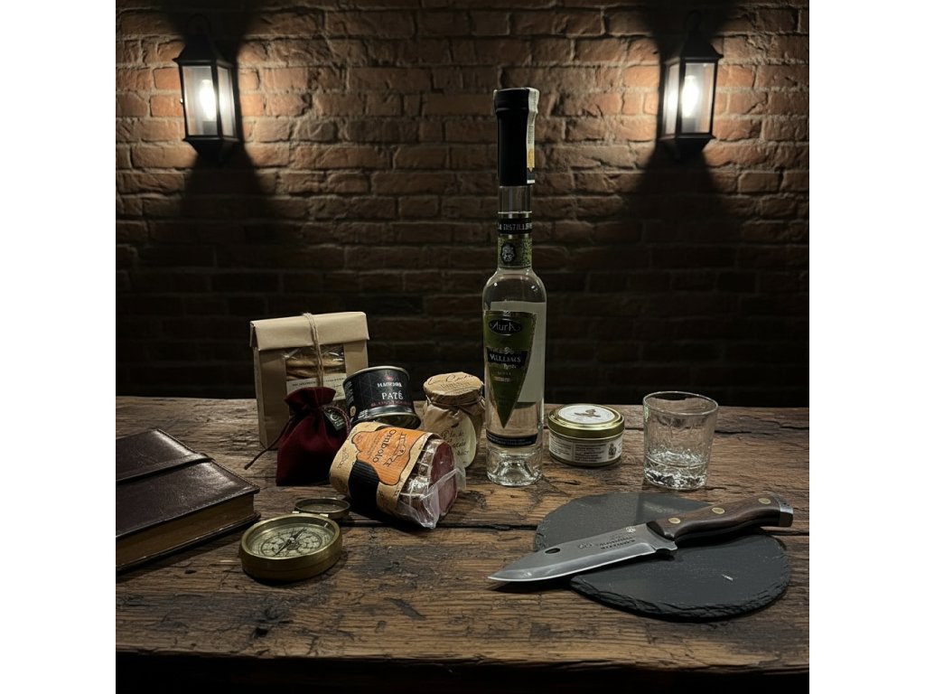 Poctivý valentýnský set pro muže, kteří si potrpí na výrazné chutě a kvalitu. Kombinace silné pálenky a delikates je ideální jako stylový dárek k Valentýnu – bez kýče, ale s charakterem.